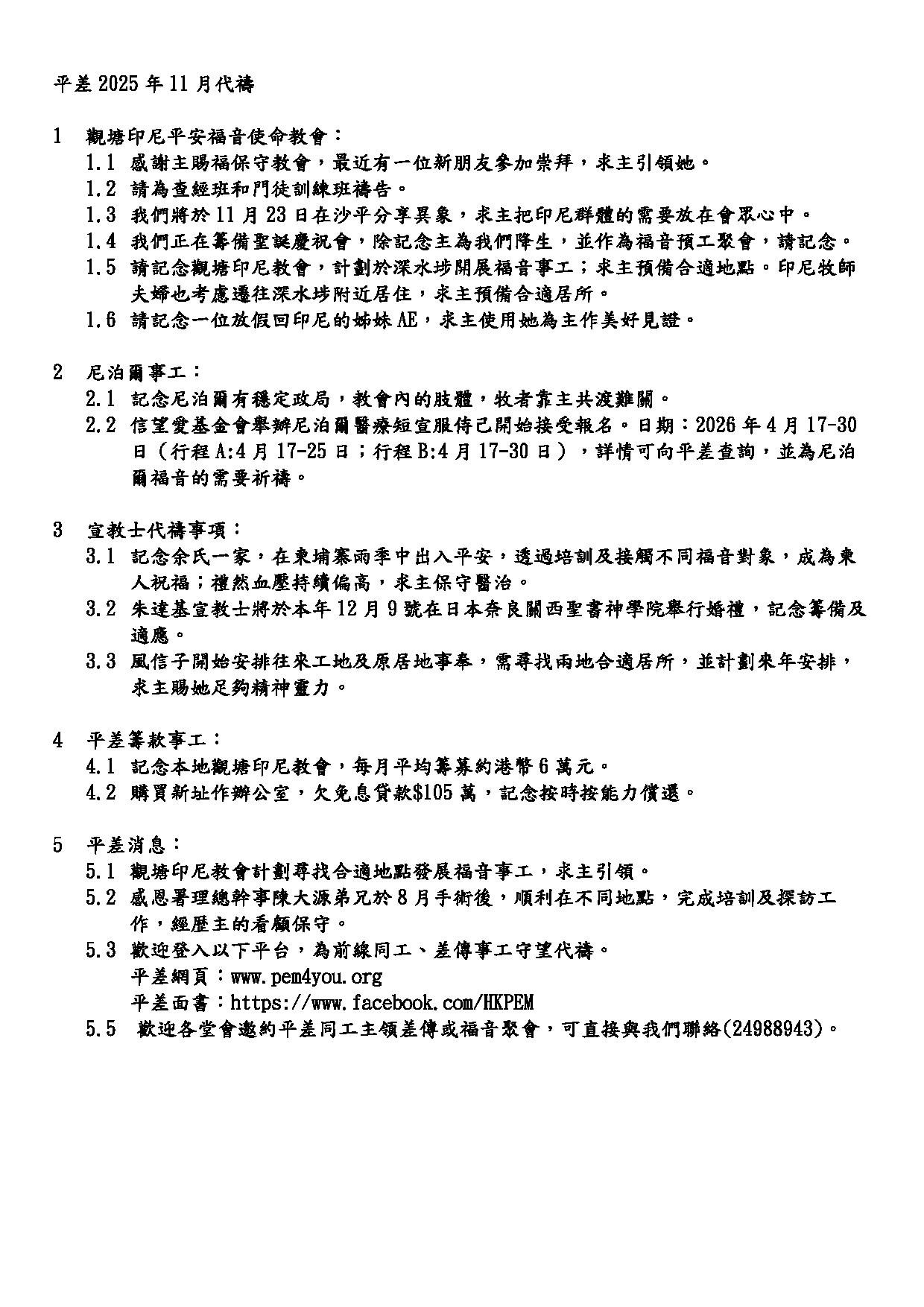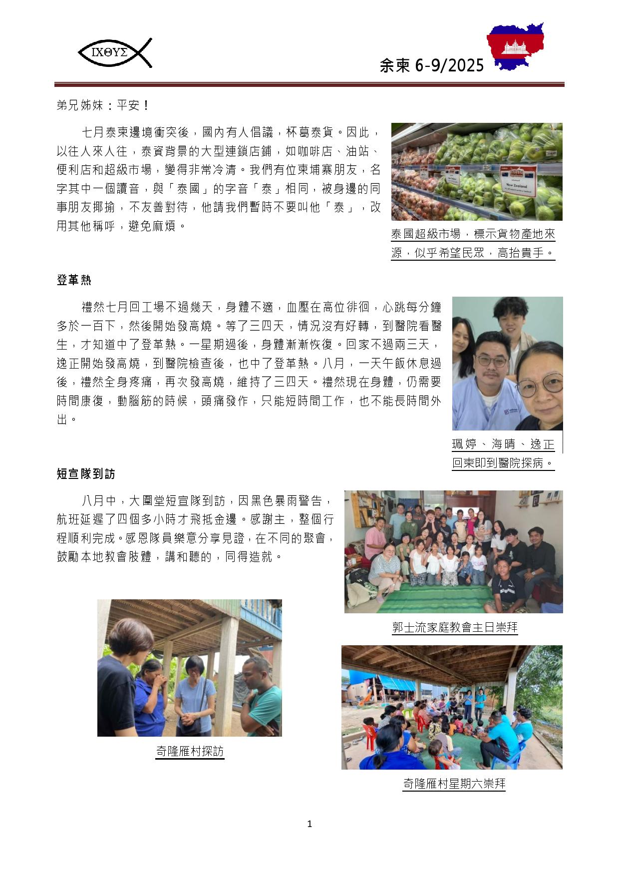 附2025_6-9余柬代禱信, 多謝大家代禱記念.