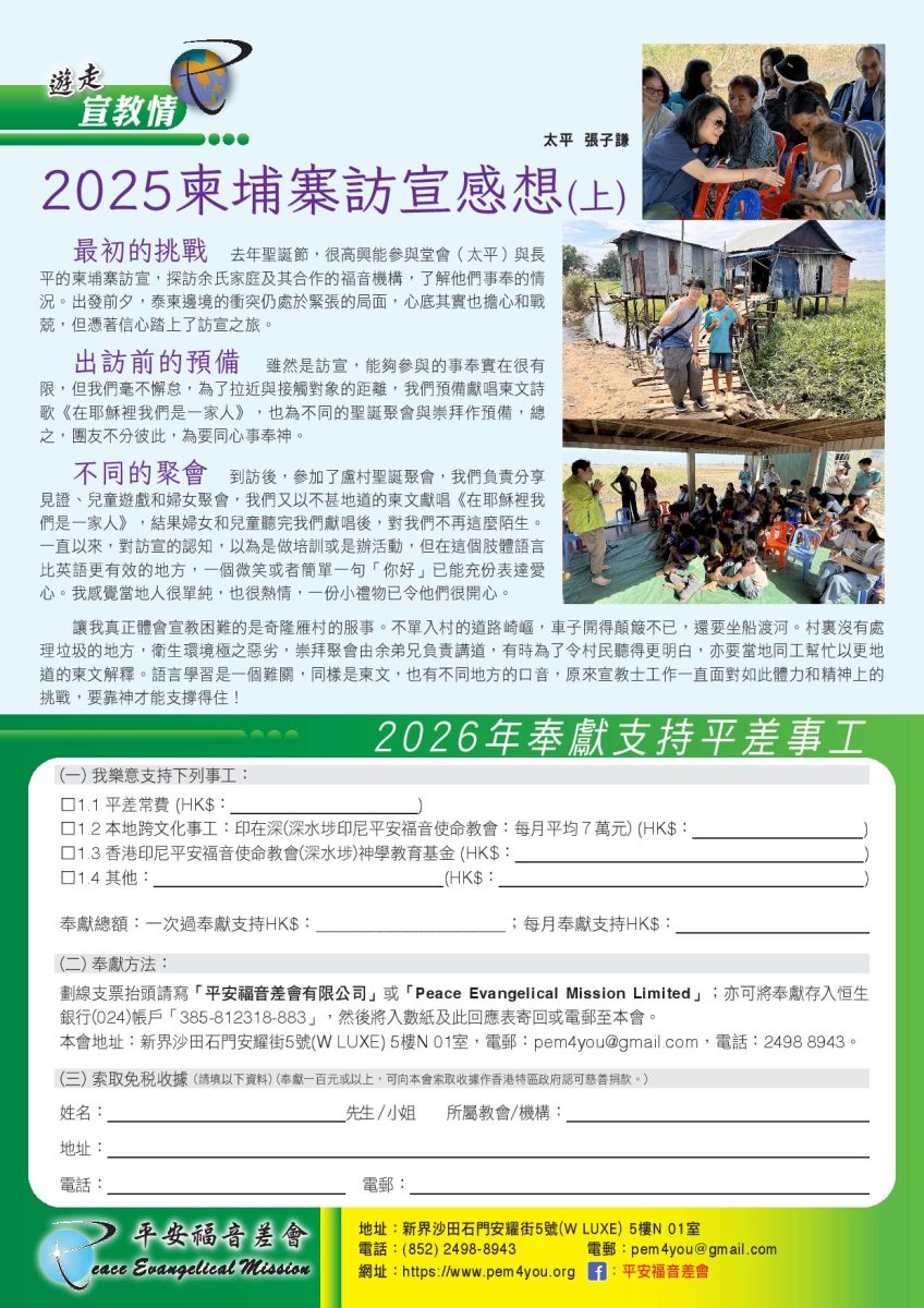 4 2 月, 2026 Related posts3 2 月, 2026平差季刊(60期)電子版,歡迎轉發肢體/團契下載傳閱代禱,謝謝Read more1 2 月, 2026平差季刊(60期)電子版,歡迎轉發肢體/團契下載傳閱代禱,謝謝Read more31 1 月, 2026平差季刊(60期)電子版,歡迎轉發肢體/團契下載傳閱代禱,謝謝Read more